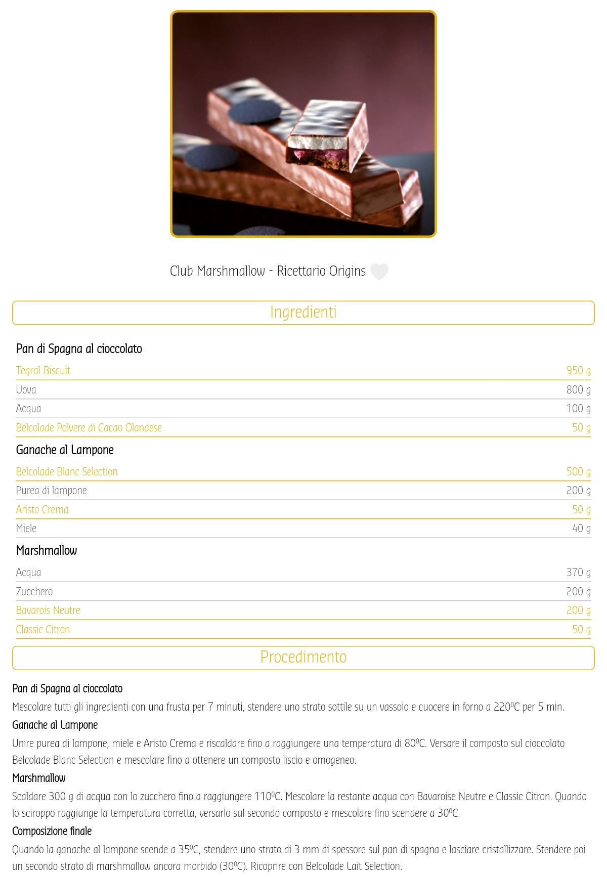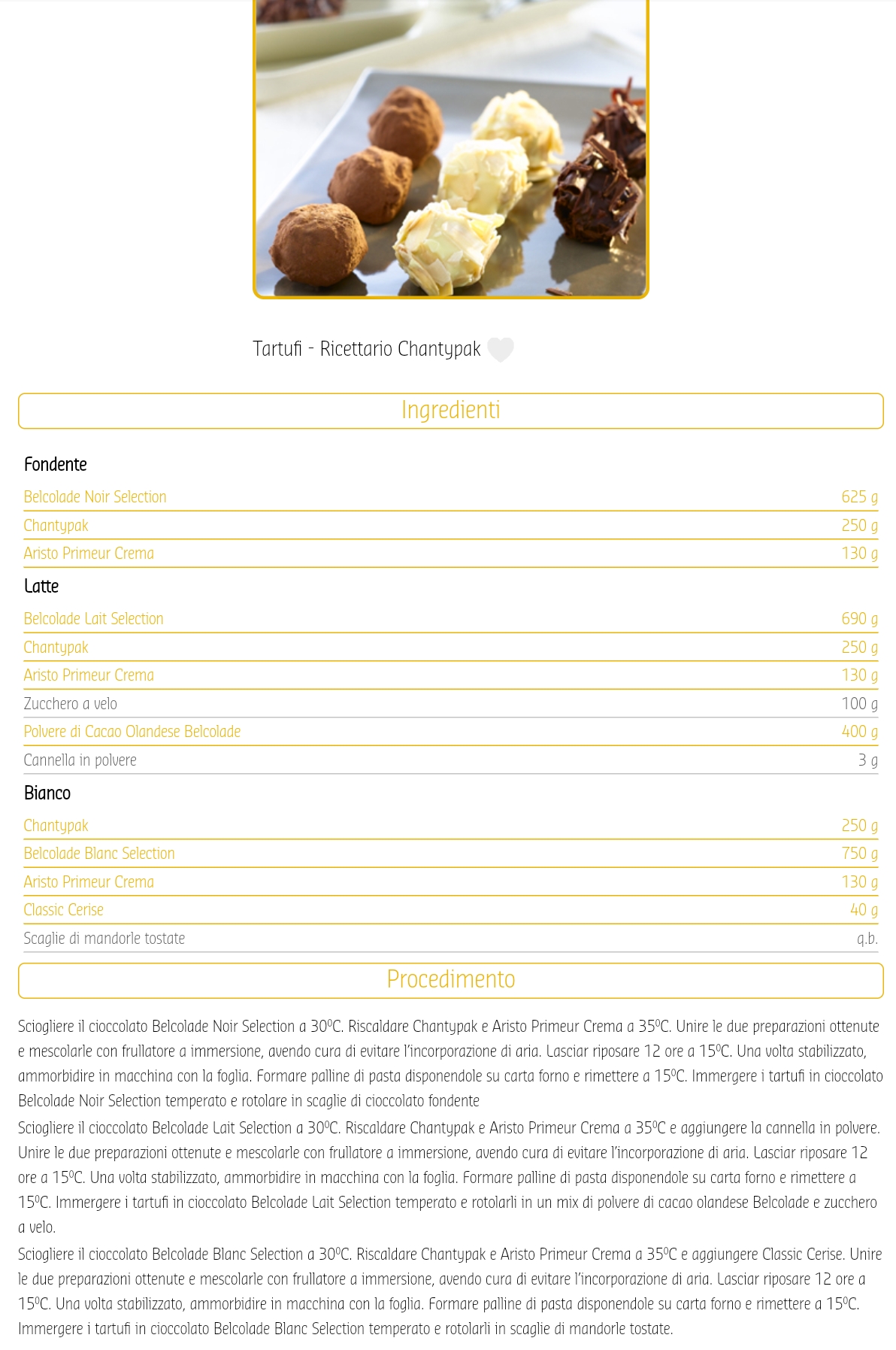 - Cioccolato dal sapore specifico e unico